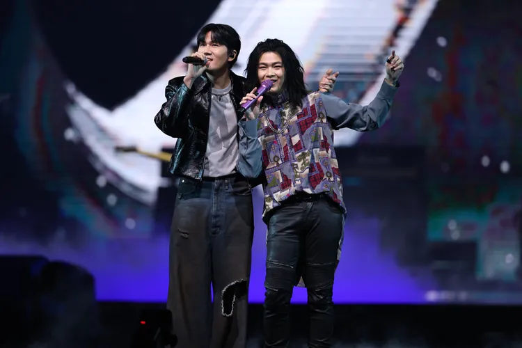 2组感情好到发片、巡演都想在一起,问到若金曲奖抢入围不会兄弟阋墙?宇宙人方Q笑呛:「那也要他们(新专辑)写得够快才行。」圣皓也笑回:「不要这样淡淡的放大砲。」相爱相杀互动笑翻全场。