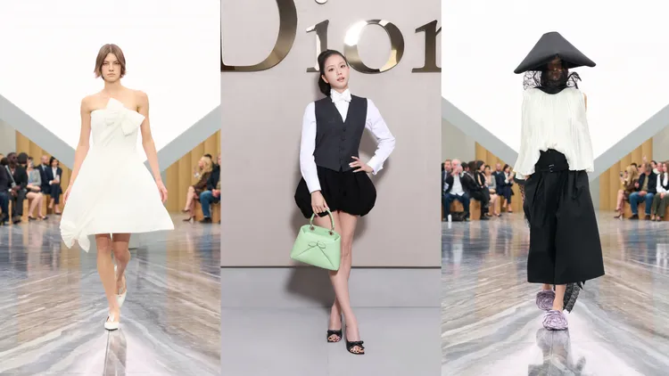 设计语言中,线条与轮廓成为叙事的工具,过去的符号被再度编织,化为兼具历史深度与当代张力的形象。整体在华丽与内敛之间取得平衡,色彩带著绘画般的沉思感,偶尔却打破节奏,以当代的断裂感注入新的呼吸。即使最简约的造型,也透出Dior工艺的细腻光泽。