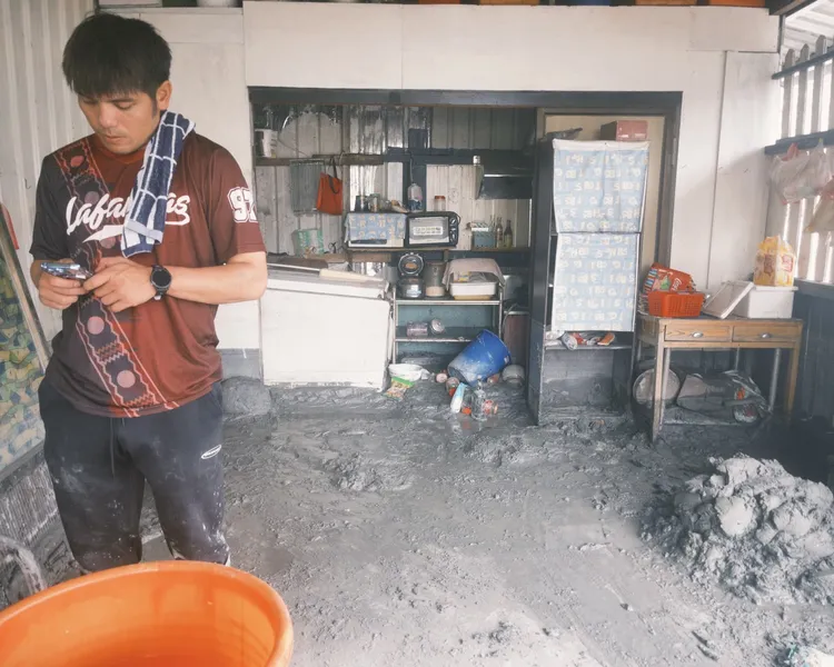 黄恩赐的老家就在马太鞍部落,是灾情严重的地方之一,因为家中只有父亲在,让他很担心,马上赶回老家,回到家中看到满目疮痍,的家具全毁,车库都是积到大腿高度淤泥,幸好爸爸平安无事,让他松口气,接下来就忙著清理家园。