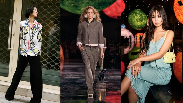 「L’UNIVERSEL」篇章则将视线推向未来,柔软线条的Blouson外套、以透明材质重组的斜纹软呢、层叠的珍珠与珐瑯链饰,共同构筑出一种既真实又梦幻的女性形象。经典双色鞋头依然存在,只是更轻盈、更自在,象征当代女性步伐中的自信与稳定。