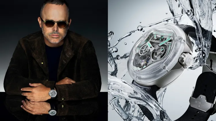 HUBLOT再度携手品牌大使Daniel Arsham,推出MP-17 Arsham Splash 蓝宝石钛金十日动力储存腕表。品牌提供