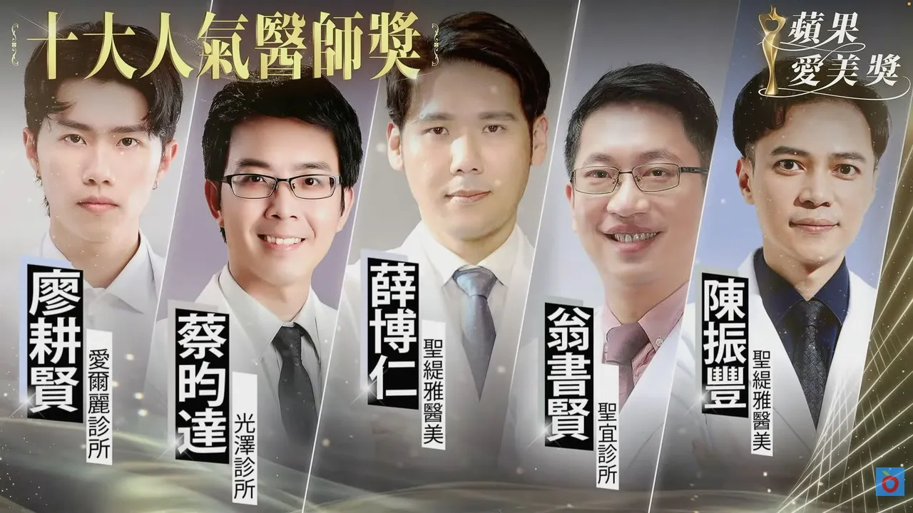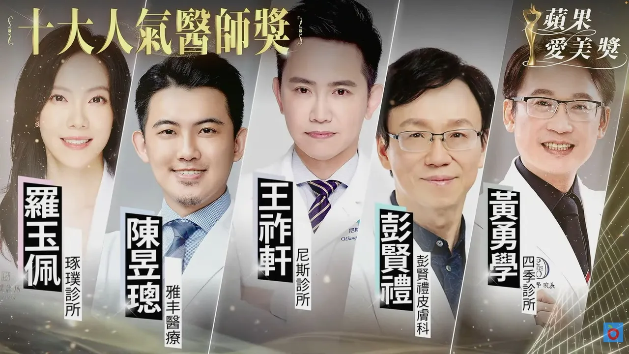 廖耕贤(爱尔丽诊所)、蔡昀达(光泽诊所)、薛博仁(圣缇雅医疗集团)、翁书贤(圣宜诊所)、陈振丰(圣缇雅医疗集团)、罗玉佩(琢璞诊所)、陈昱璁(雅丰诊所)、王祚轩(尼斯诊所)、彭贤礼(彭贤礼皮肤科)以及黄勇学(20skin四季诊所),呈现今年最具支持度的医师组合。