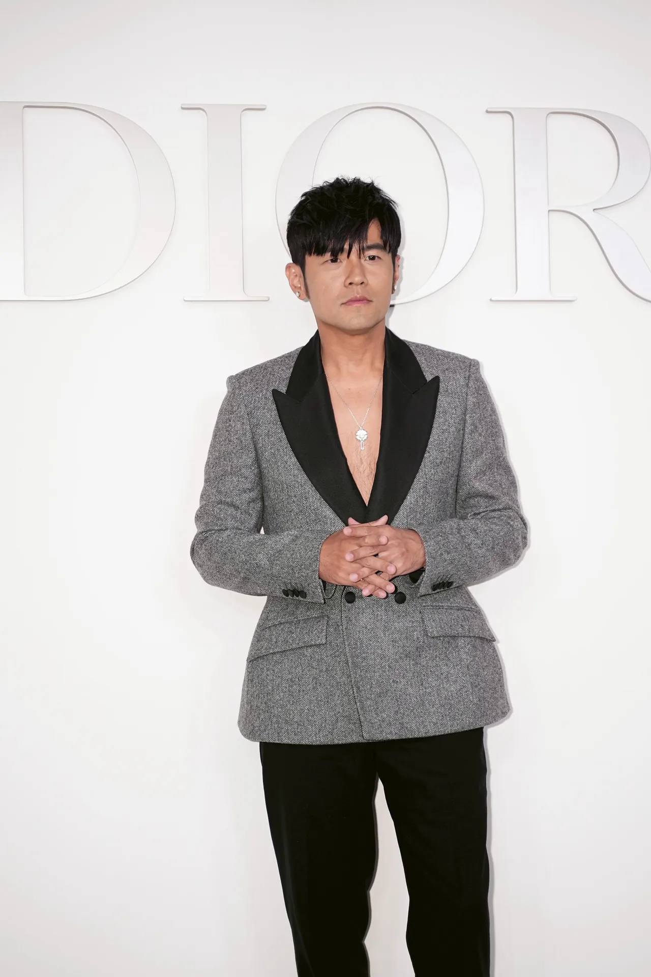 周杰伦身为Dior品牌代言人,表示今天想要好好到店里逛一下,买些礼物给家人,他分享今日穿搭,认为外套相当独特,直接复制秀上Model的造型「中空」秀胸肌,「害羞的人可以加一件黑色T恤,但因为Model在秀上没有穿,我也只好没有穿」。
