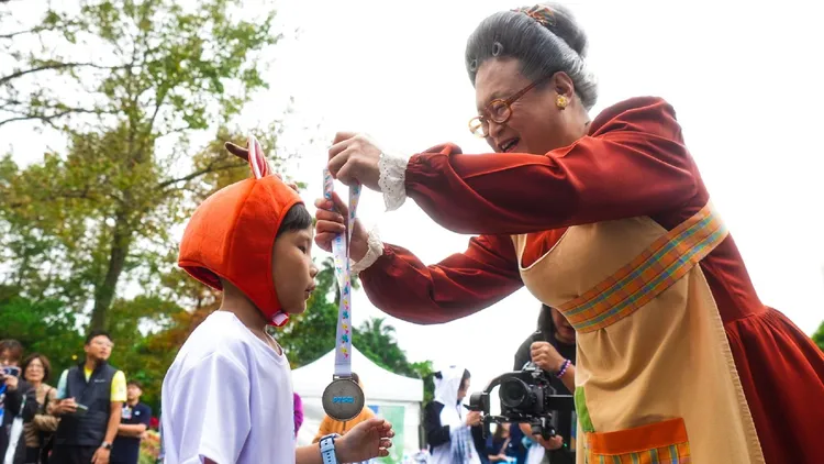 水果奶奶说,她很喜欢动物,也常在节目中介绍各种动物保育的观念和知识,她认为,喜欢动物的小朋友都最善良、最可爱,她也希望透过今天在动物园的路跑活动,跟所有小朋友一起更爱护动物、爱护地球,暖暖则分享这次自己第一次参加路跑,以及和妈妈一起准备的心情,认真又可爱的模样,让现场大小朋友都感到开心。