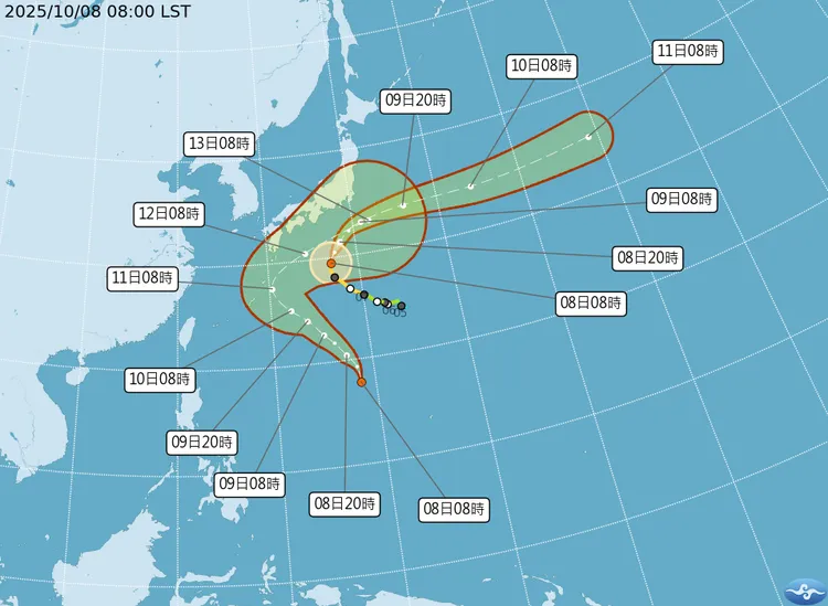 位于日本南方海面的第22号台风「哈隆」(HALONG)持续发展,气象署今(8)日上午8时最新资料指出,中心气压935百帕、近中心最大风速每秒51公尺、瞬间最大阵风达每秒63公尺,七级风暴风半径约220公里、十级风半径约100公里,属强烈台风等级。台风以每小时20公里速度朝北北东移动,预估将在日本南方海域转向北方,对台湾天气暂无直接影响。