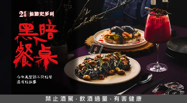 「敲破诅咒黑班尼蛋」拿起你的汤匙,一口打破万圣诅咒!以黑起司酱与酪梨酱完美包裹鲑鱼与水波蛋,搭配口感扎实的欧包和洋酿TACO酱,再洒上神秘辣椒粉,微辣与滑顺交织,每一口都是打破诅咒的万圣早午餐仪式。「幽灵毒酒樱桃饮」万圣夜限定深红如血的调饮,龙舌兰搭配樱桃、接骨木、柠檬与香吉士,最后串上的带有辣意酒渍樱桃。每日17:00后供应的「黑森林蘑菇辣黑面」浓郁白酱与墨鱼面交织,培根与新鲜蘑菇释放阴森的香气,百里香点缀其中,微辣刺激味蕾。