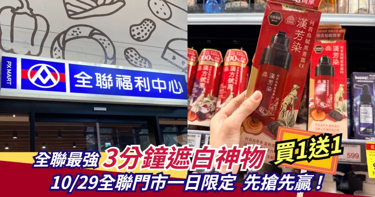 说到划算、抢便宜、省荷包,全联真的超懂消费者!全联门市在10/29(三)这天推出「汉芳赋黑露」限时买1送1的活动,换算1瓶只要$449.5元!绝无仅有的优惠只有一天,错过只能捶心肝,想要体验全联3分钟遮白神物的朋友们,赶快把握机会入手!