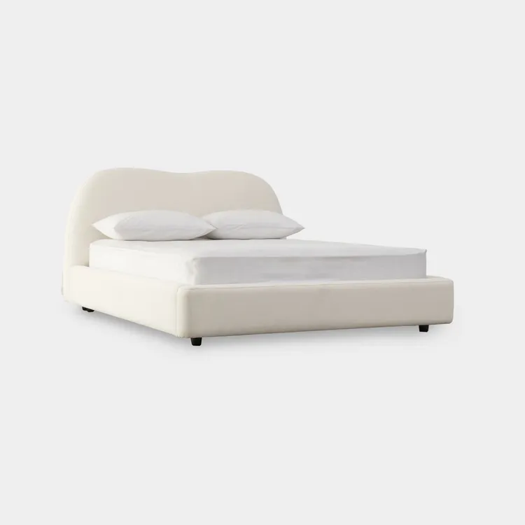 卧室是每天休息与充电的空间,HOLA「奥可利流线布床架」以柔和圆弧勾勒出云朵般的线条,仿佛躺在云端入眠,搭配暖白色细棉麻布料,帮卧室定下安心放松的主调!寝具则推荐「克莱欧蕾丝300织天丝床被四件组」,使用100%的天丝™莱赛尔纤维制成,带有自然光泽,镂空蕾丝刺绣工艺提升细节与质感。床边铺上「克莱欧缇花羊毛地毯」,天然羊毛材质提供柔软脚感,完美的云朵卧室空间就此诞生。