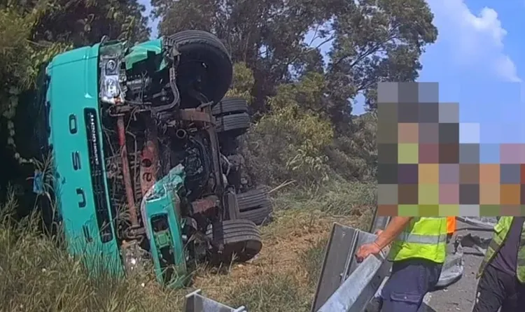 嘉义县消防局11日中午12时许接获报案,国道中山高南下259.7公里处有车祸事故,有民众受伤受困,立刻派遣辖区分队驰援,到场时发现是大货车自撞外侧护栏后翻落边坡,车头受损驾驶卡在车内,立刻以机具破坏将人拉出,驾驶意识清楚,但肢体有多处撕裂伤及擦挫伤,应急处置后送往卫福部嘉义医院救治。