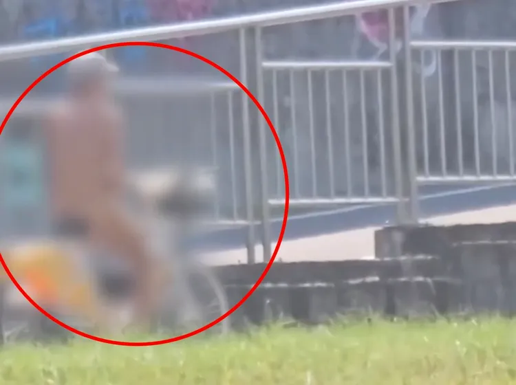 林男说,转身果然看见一名戴著白色帽子的男子一丝不挂,悠哉著骑著黄色公共自行车,在河滨公园道路上前进,他马上拿出手机录影存证,而且仔细一看,他右手还放在两腿中间,疑似在抚摸生殖器,还光著屁股坐在自行车上,让人感觉到很恶心!