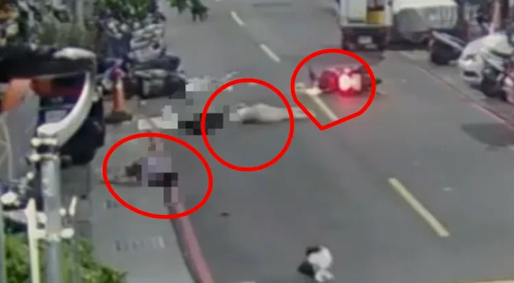 据辖区警方调查,事故造成张男颅骨骨折、颅内出血、全身多处擦挫伤;钟女脑出血,全身多处擦挫伤;唐女左小腿开放性骨折、内出血。而从路口监视器可见,当时撞击力道相当之猛,机车翻了360度后重摔,唐妇遭到重创当场倒地不起,而骑士与乘客分别被甩至两边,安全帽更是飞到数十公尺外,相当惊悚。