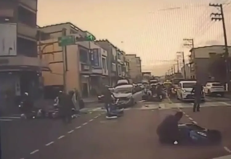 警方调查,李姓男子(45岁)今天下午驾驶自小客沿桃园区永安路往富国路方向直行,因操作不当致使车辆冲撞前方停等红灯之6位机车骑士,导致6人均受擦挫伤,警员获报立即赶抵现场疏导交通,并协助伤者送医治疗。经实施测试,所有当事人均无酒精反应,后续肇事责任由警方厘清中。