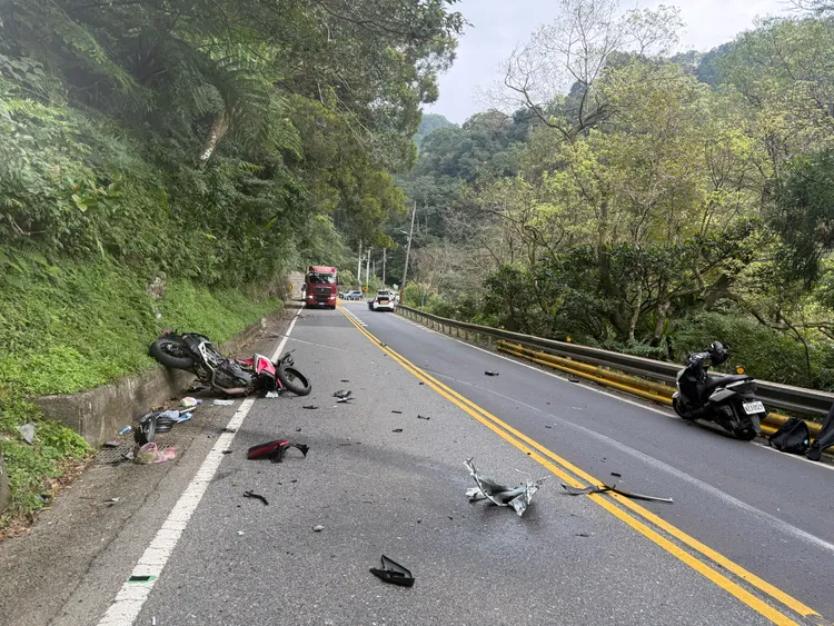 据了解,今天下午一名重机骑士沿北宜公路往新店方向前进,不料经过茶壶弯时却与对向大货车碰撞,强大冲击力导致机车惨成废铁,车体零件四散在道路上,骑士也因此当场失去生命迹象,其他路过民众见状立刻上前协助CPR,直至警消赶抵后才交由救护车送医,详细车祸原因还有待进一步厘清。