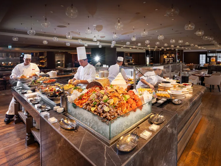 【陈扬盛/综合报导】「普发一万」热烈开跑,台北君悦餐饮金再放大1.3倍回馈!即日起至明年1月底每周一至周三全馆餐厅皆可以1千元抵用1300元,至多以6千元折抵7800元餐饮消费金额。台北君悦酒店凯菲屋自助餐厅三度携手马来西亚友谊及贸易中心与马来西亚观光局,即日起至12/7推出限定「马来美馔‧经典再现」,由新加坡籍台北君悦执行总主厨陈万钦监制道地南洋风味,亲领凯菲屋厨艺团队献上经典肉骨茶、椰浆饭及仁当牛肉等近20道佳肴。