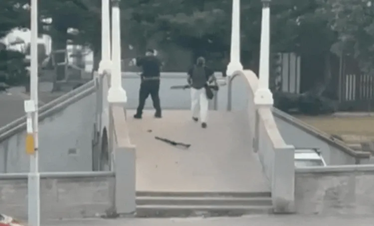 【国际中心/综合报导】澳洲雪梨知名的邦代海滩(Bondi Beach)惊传大规模枪击案,造成至少56人死伤。最新曝光画面显示,枪手在天桥上杀红眼,不过下秒躲不过狙击手神准反击,中弹倒地痛苦呻吟。